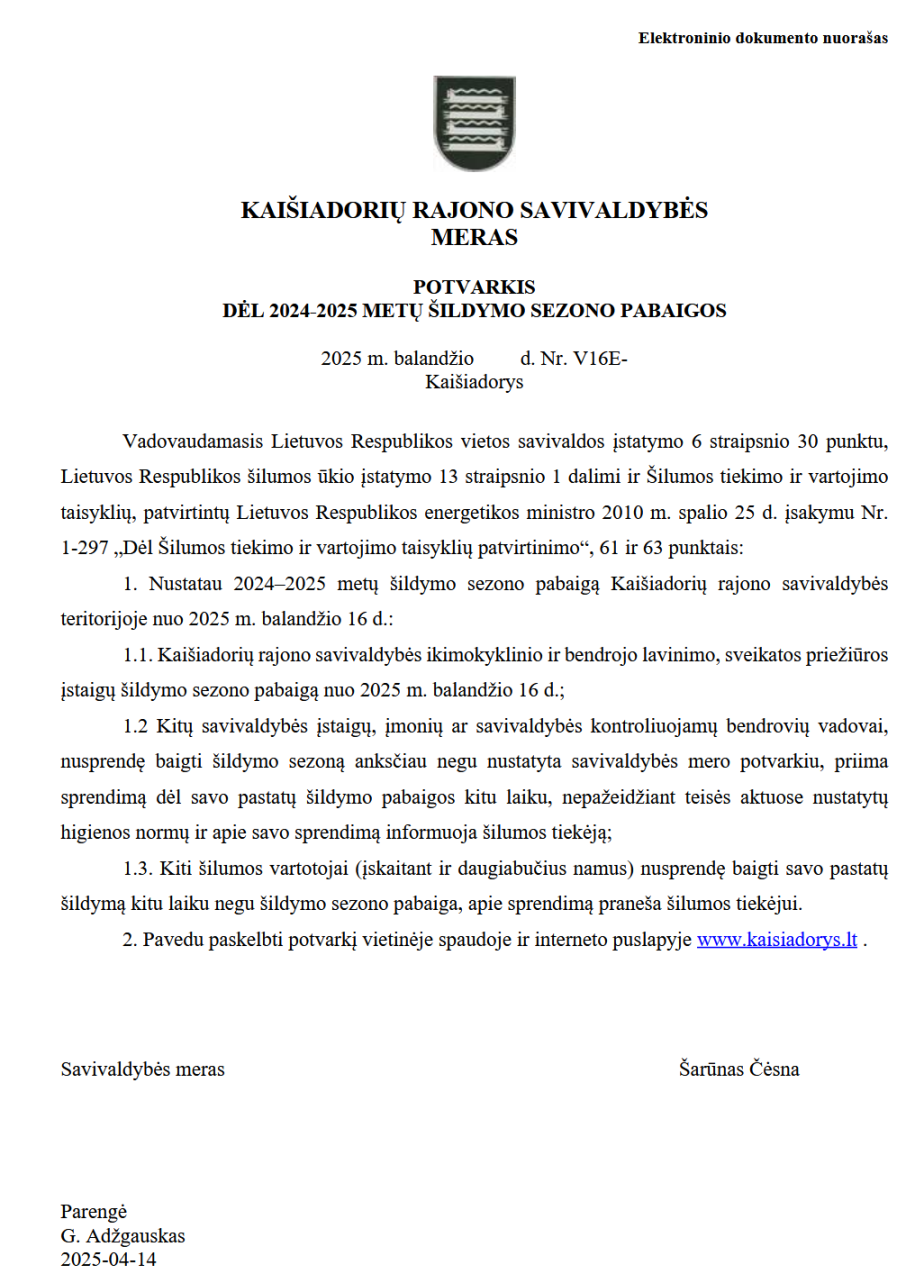 Dėl 2024–2025 metų šildymo sezono pabaigos