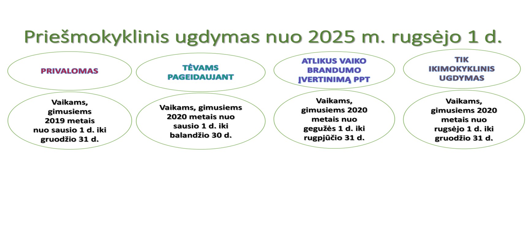 Primename, kad priešmokyklinis ugdymas yra privalomas ir pradedamas teikti vaikui, kai tais kalendoriniais metais iki balandžio 30 dienos jam sueina 5 metai. Švietimo, mokslo ir sporto ministro nustatyta tvarka įvertinus vaiko ugdymo ir ugdymosi poreikius, pažangą, vaikui priešmokyklinis ugdymas gali būti pradedamas teikti, kai jam tais kalendoriniais metais 5 metai sueina iki rugsėjo 1 dienos. Priešmokyklinis ugdymas gali būti teikiamas vėliau tėvų (globėjų) sprendimu, bet ne vėliau, negu vaikui tais kalendoriniais metais sueina 6 metai.