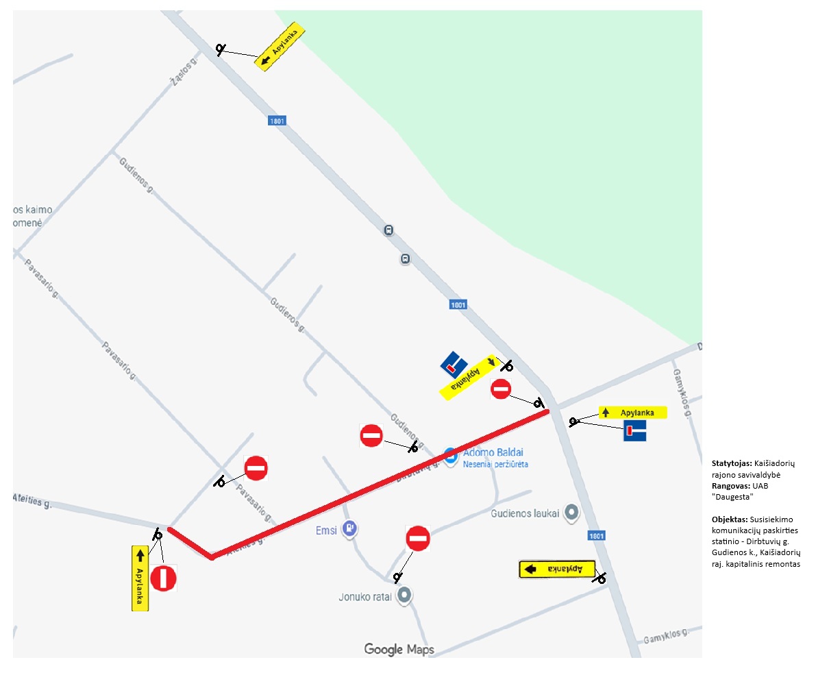 Informuojame, kad dėl vykdomų remonto darbų nuo 2025 m. vasario 26 d. keičiama eismo schema Gudienos k. Dirbtuvių gatvėje.