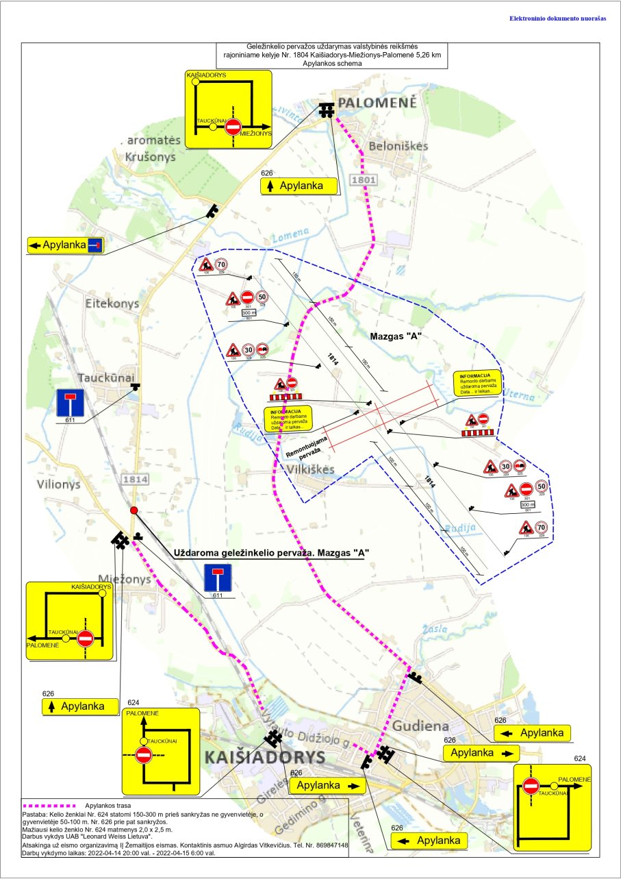 Informuojame, kad nuo 2025-07-24 19.30 iki 2025-07-25 05.00 planuojami vykdyti geležinkelio pervažos remonto darbai adresu Kaišiadorių r. sav., Palomenės sen., Miežonių k., Pervažos g.