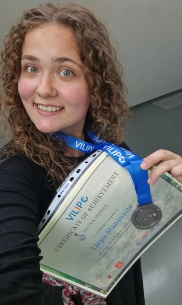 Džiaugiuosi galėdama pasidalinti pasiekimais – nacionaliniame konkurso etape laimėjau aukso medalį, o tarptautiniame – sidabro medalį. Šie apdovanojimai man ne tik svarbūs kaip pripažinimas, bet ir kaip paskata toliau gilintis į pasirinktą sritį, kurti ir ieškoti sprendimų, kurie galėtų prisidėti prie teigiamų pokyčių pasaulyje. Dalyvavimas VILIPO konkurse buvo neįkainojama patirtis – ne tik dėl įgytų žinių ir įgūdžių, bet ir dėl naujų pažinčių, tarptautinės atmosferos ir galimybės pristatyti savo mokslinį darbą pasauliui. Tikrai nesigailiu, kad dalyvavau – priešingai, jau dabar svajoju apie naujus projektus ir ateities galimybes.
