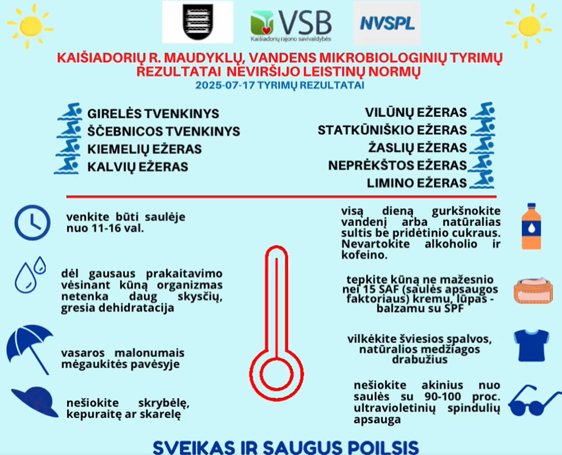 Kaišiadorių rajono maudyklų vandens mikrobiologinių tyrimų rezultatai