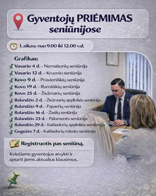 Kviečiame gyventojus registruotis į gyventojų priėmimus seniūnijose