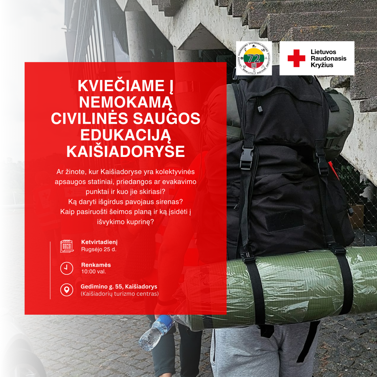 Kviečiame į Raudono Kryžiaus organizuojamą nemokamą civilinės saugos edukaciją