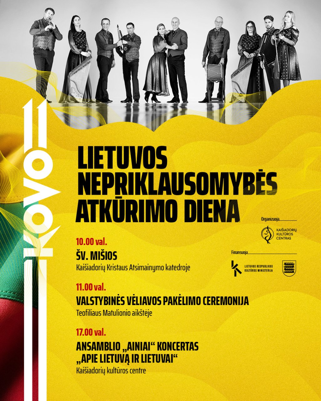 17.00 – Ansamblio „Ainiai“ koncertas „Apie Lietuvą ir Lietuvai“ Kaišiadorių kultūros centre