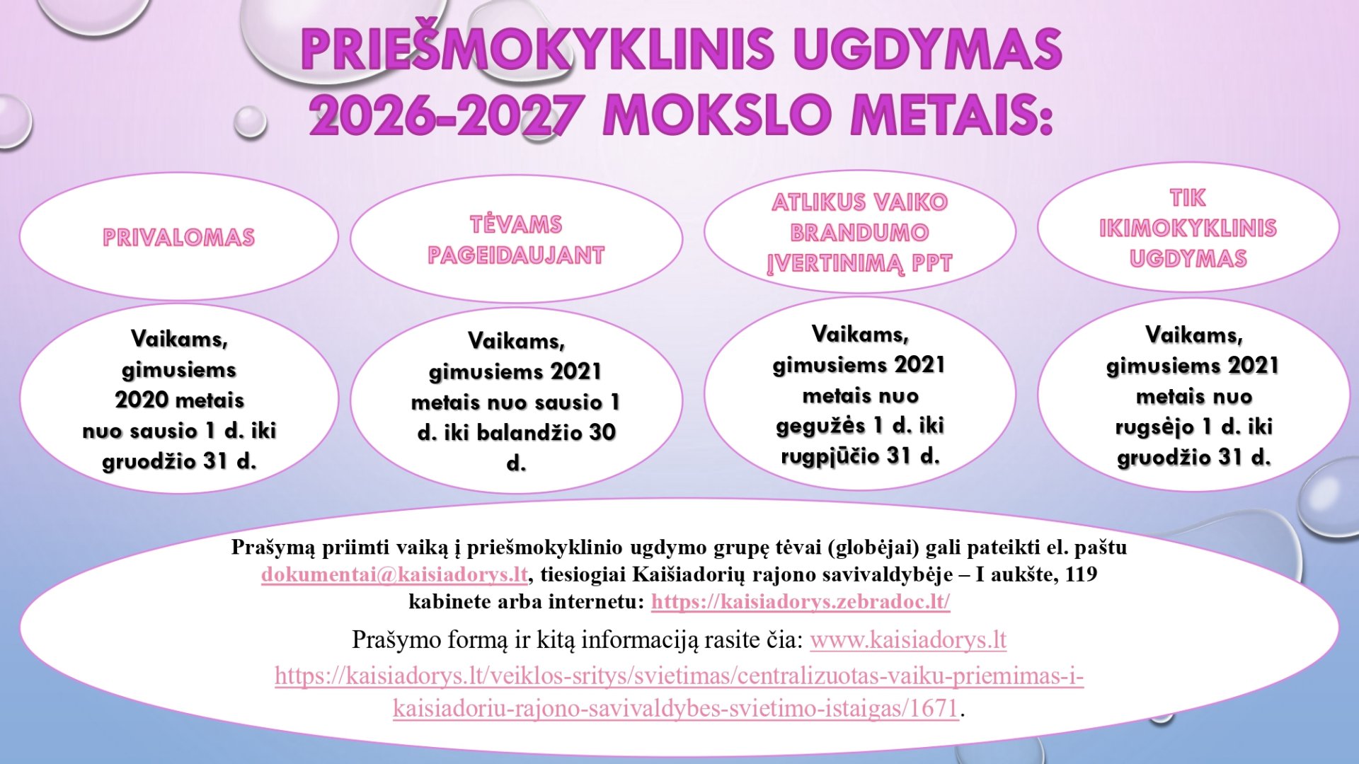 Naudinga informacija dėl priešmokyklinio ugdymo nuo 2026 m. rugsėjo 1 d.