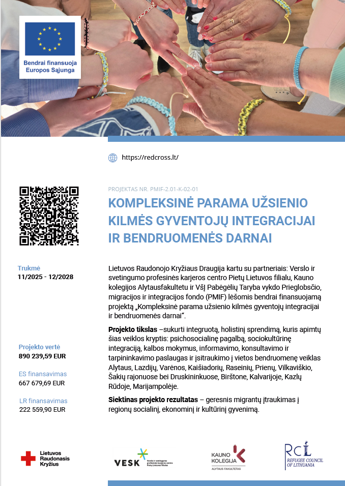 nuo 2026 m. sausio 12 d. Raseinių rajono savivaldybėje startavo naujas projektas „Kompleksinė parama užsienio kilmės gyventojų integracijai ir bendruomenės darnai“, kurį vykdo Lietuvos Raudonasis kryžius. Prie šio projekto yra priskirta ir Kaišiadorių sav