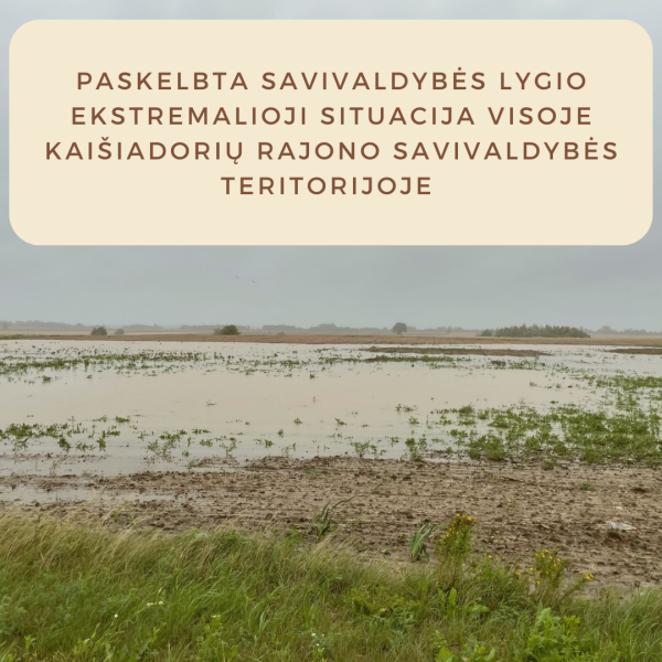 skelbiama savivaldybės lygio ekstremalioji situacija visoje Kaišiadorių rajono savivaldybės teritorijoje dėl stichinio meteorologinio reiškinio – labai smarkaus lietaus.