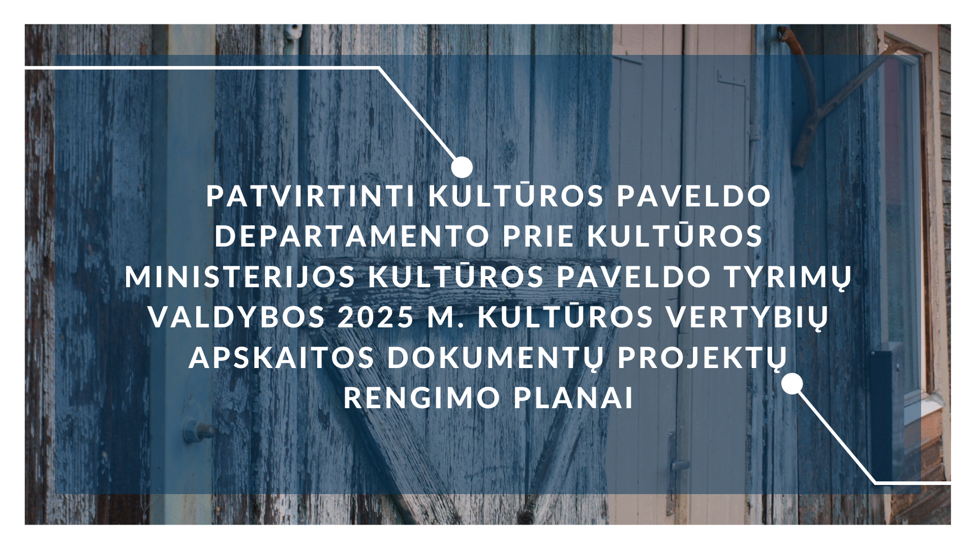 Patvirtinti Kultūros paveldo departamento prie kultūros ministerijos Kultūros paveldo tyrimų valdybos 2025 m. kultūros vertybių apskaitos dokumentų projektų rengimo planai