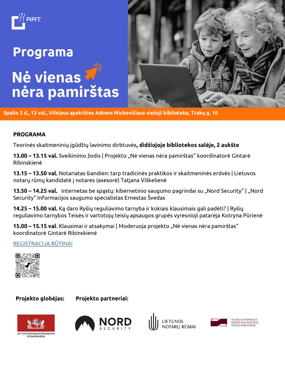 Projektas nė vienas nėra pamirštas. Notaras + saugumo ekspertas: susitikime spalio 2 d.
