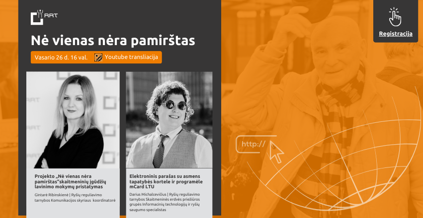 Ryšių reguliavimo tarnybos skaitmeninių įgūdžių lavinimo projektas „Nė vienas nėra pamirštas“ ir vėl Jus kviečia į nemokamą nuotolinę paskaitą!