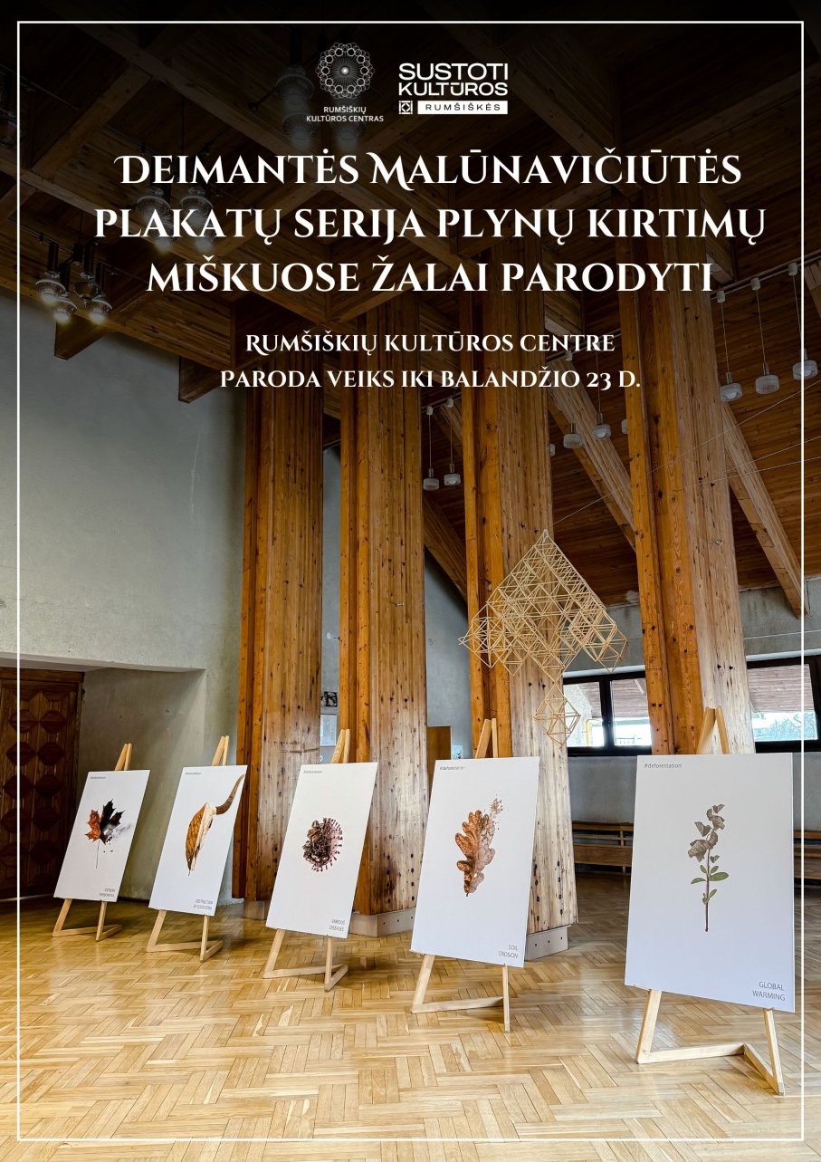 Minint Pasaulinę Žemės dieną, Rumšiškių kultūros centre buvo išeksponuota Deimantės Malūnavičiūtės plakatų serija plynų kirtimų miškuose žalai parodyti. Plakatai sukurti taip, kad sudarytų tiesioginę akistatą su problema ir jos pasekmėmis. Mus supančios aplinkos pažeidžiamumas vaizduojamas per visiems pažįstamus simbolius. Fono spalva pasirinkta neutrali, švari, kuri įprasmina nykstančią biologinę įvairovę ir simbolizuoja ateities praradimus – plynų kirtimų tuštumą. Plakatuose yra tik esminė problema ir pasekmė. Visa tai jungia vizualūs simboliai centre.