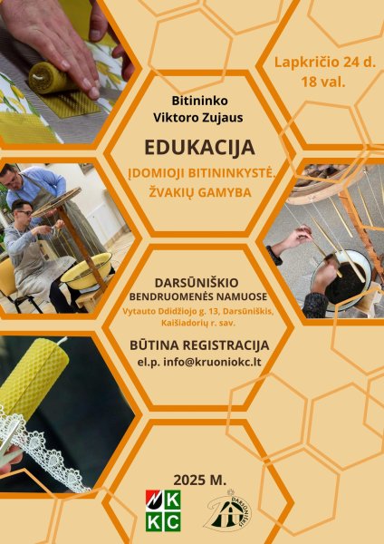 Edukacijos metu bitininkas Viktoras Zujus supažindins su įdomiais faktais apie bites, praktinėje dalyje pristatys kelis žvakių gamybos iš vaško būdus.
