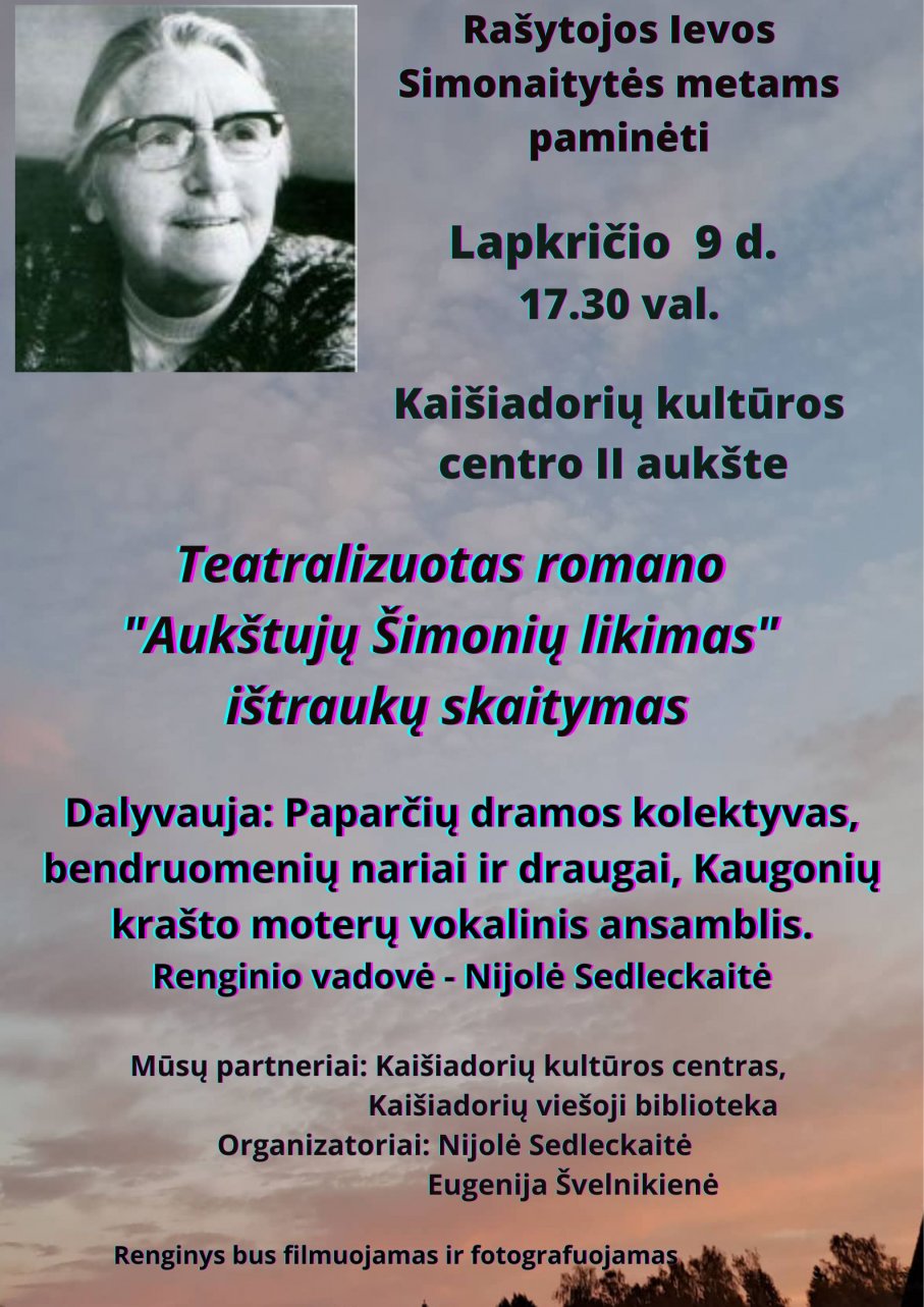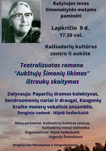 Renginys skirtas rašytojos Ievos Simonaitytės metams paminėti.