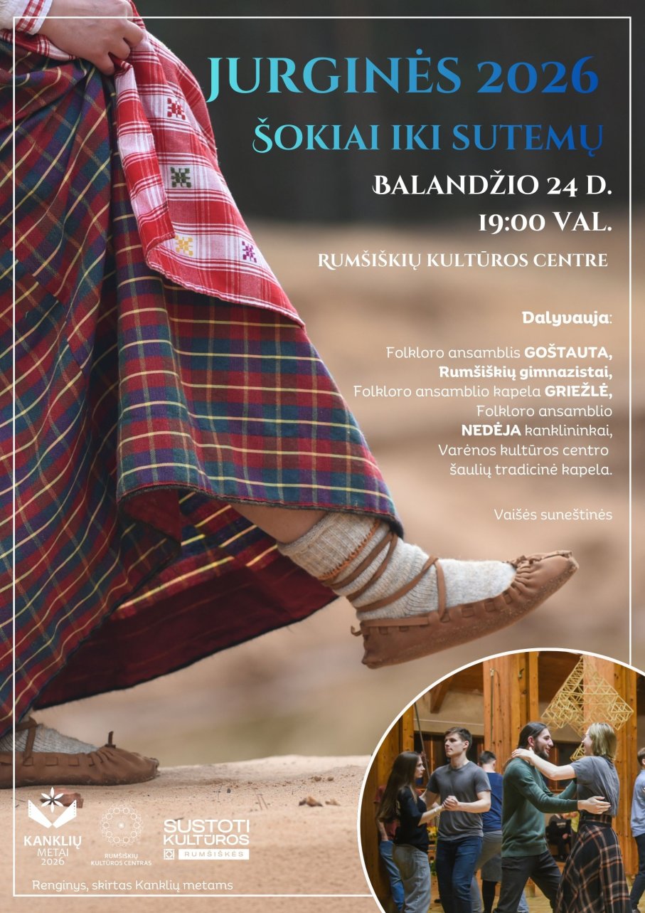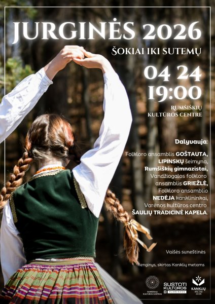 Balandžio 24 d. susitinkame Rumšiškių kultūros centre, kur švęsime Jurgines – pavasario žalumos, jaunimo, žemdirbių ir arkliaganių šventę! Tradiciškai, šventę pradėsime lauke, dainuosime Jurginių dainas, šoksime, vėliau šventė persikels į Rumšiškių kultūros centrą, kur dalinsimės duona su užkeptu kiaušiniu, dainuosime ir šoksime iki paryčių.