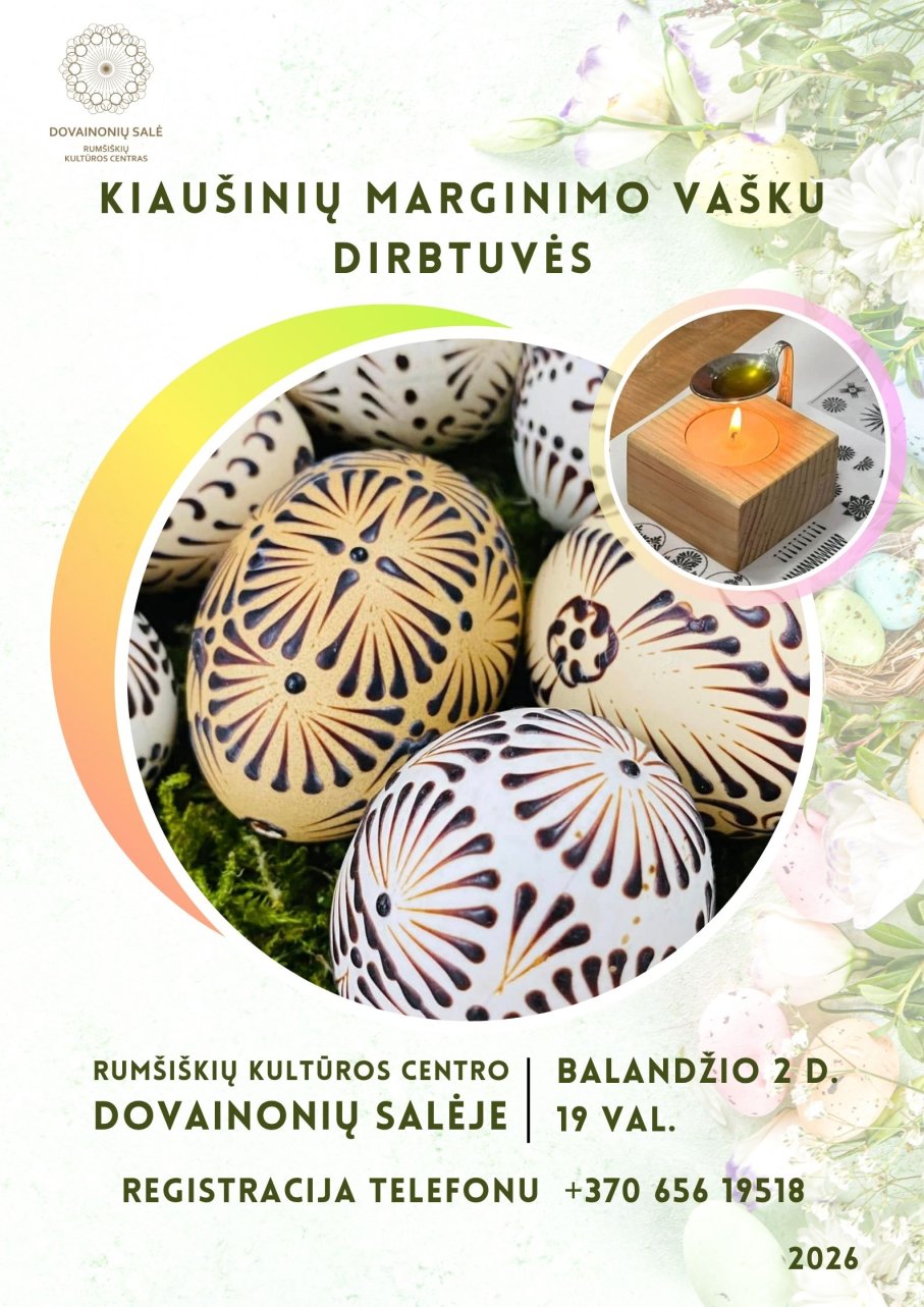 Artėjant šventėms, kviečiame sustoti, pabūti čia ir dabar bei išmokti tradicinio kiaušinių marginimo meno. Dirbtuvių metu susipažinsite su kaušinių marginimo vašku technika, raštų simbolika ir patys susikursite unikalius, rankų darbo margučius. Tai puiki proga ne tik išmokti kažką naujo, bet ir prasmingai praleisti laiką jaukioje bendrystėje.