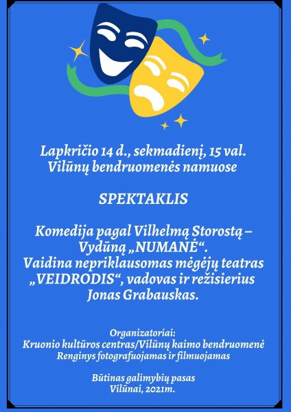 Komedija pagal Vilhelmą Storostą–Vydūną „Numanė“, vaidina nepriklausomas mėgėjų teatras „Veidrodis“, vad. Jonas Grabauskas