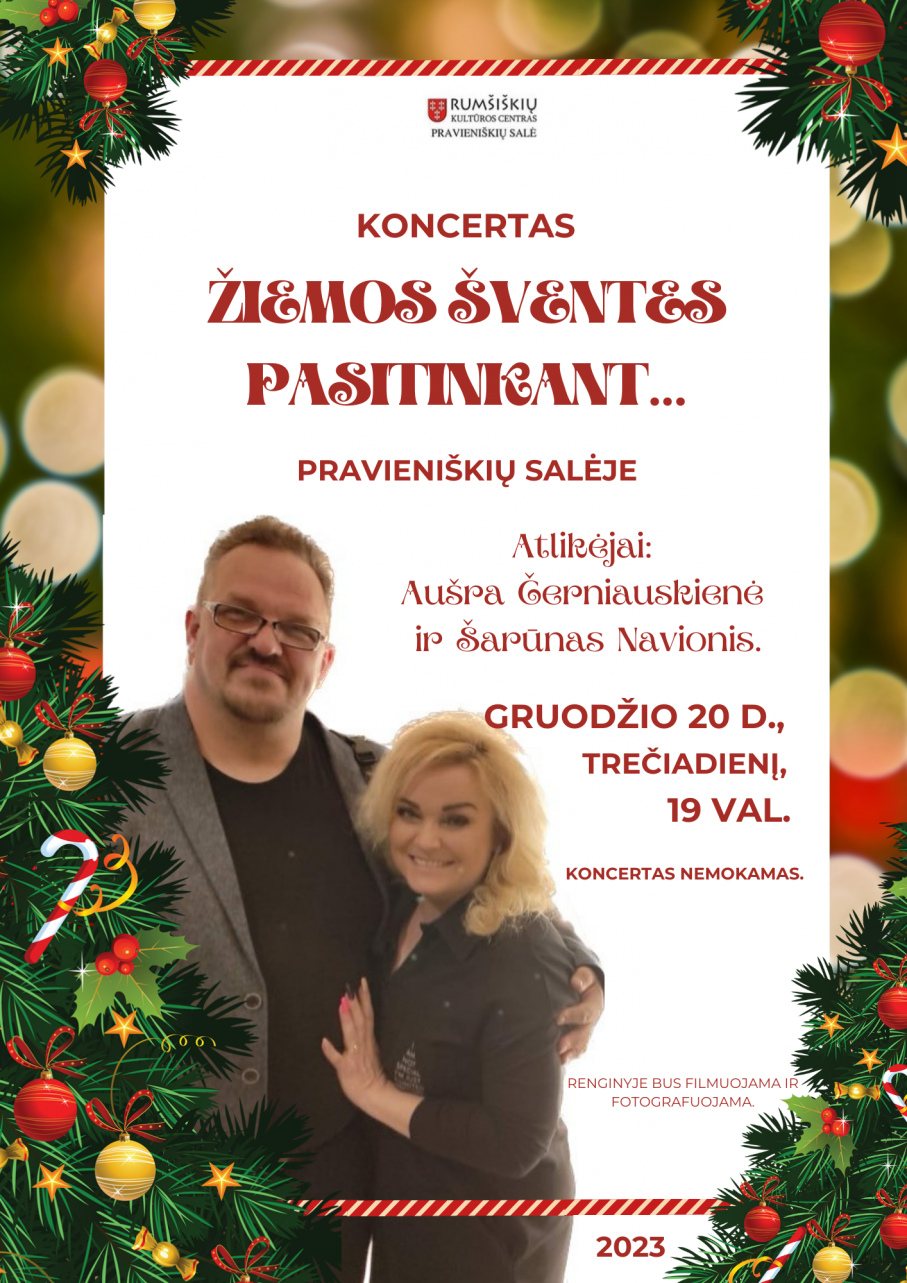 Žiemos šventes pasitikti kviečiame su populiarių dainų atlikėjais Aušra Černiauskiene ir Šarūnu Navioniu.