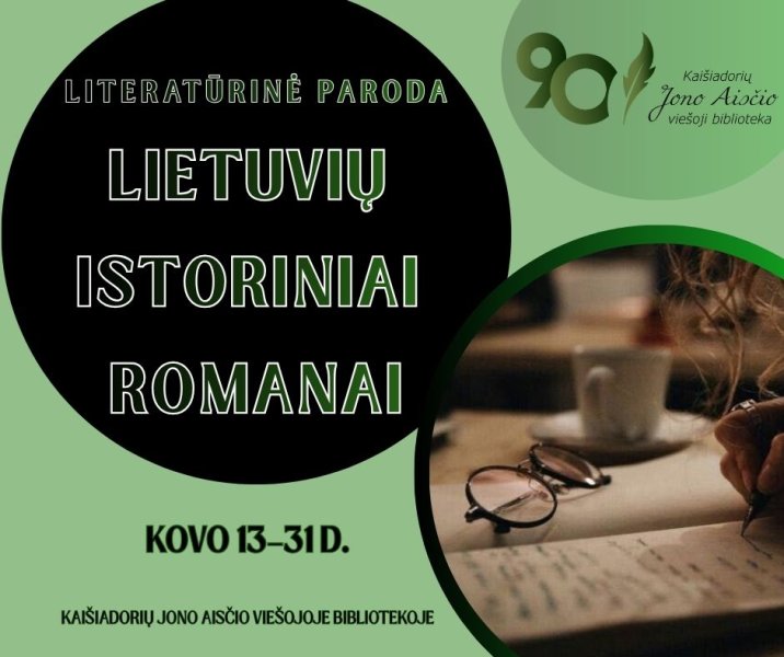 Kviečiame apsilankyti literatūrinėje parodoje „Lietuvių istoriniai romanai“, skirtoje bibliotekos 90-mečio mėnesio temai – istorinei literatūrai. Parodoje pristatomi lietuvių autorių istoriniai romanai, atskleidžiantys skirtingus Lietuvos istorijos laikotarpius, svarbias asmenybes ir lemtingus įvykius. Tai puiki galimybė per grožinę literatūrą pažinti praeitį, pajusti epochų dvasią ir iš naujo atrasti istoriją per pasakojimus. Šios parodos akcentas – žalia spalva, simbolizuojanti gyvybę, augimą ir tęstinumą, primenanti, kad istorija – tai mūsų šaknys ir tapatybės dalis.