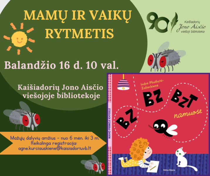 Kviečiame į mamų ir vaikų rytmetį – edukaciją „Sensoriniai skaitymai“ pagal knygelę „Bz bz bzt namuose“.