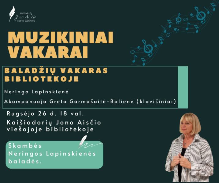 Muzikinių vakarų atidarymas. Neringos Lapinskienės baladžių vakaras.