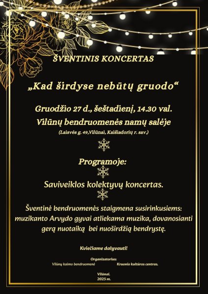 Šventinis kultūros centro saviveiklos kolektyvų koncertas organizuojamas kartu su Vilūnų kaimo bendruomene.