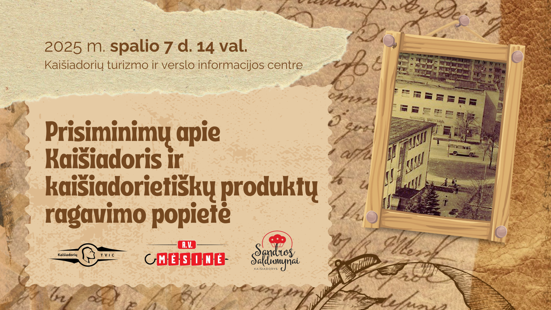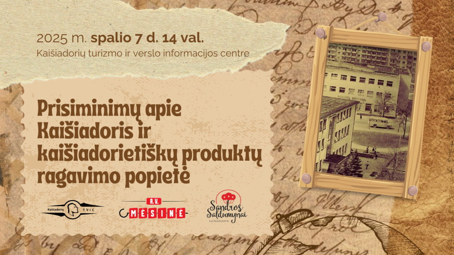 Kaišiadorių turizmo ir verslo informacijos centro kolektyvas maloniai kviečia vyresnio amžiaus žmones ateiti į susitikimą, kuriame pabendrausime, pasidalinsime vaikystės prisiminimais apie Kaišiadorių miestą, pastatus, įvykius. Galite atsinešti senų nuotraukų. Ragausime kaišiadorietiškos produkcijos, kurią gamina mūsų krašto verslininkai. Numatoma renginio trukmė – 2 val. Susitikimas vyks centro salėje, todėl labai prašome pranešti apie dalyvavimą tel. +370 672 48327 arba el. p. kaisiadorysinfo@gmail.com.