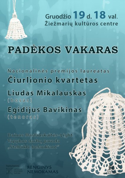 Dalyvauja Nacionalinės premijos laureatas Čiurlionio kvartetas, Liudas Mikalauskas (bosas), Egidijus Bavikinas (sopranas).