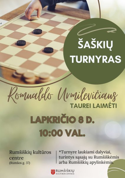 Kaip ir kasmet Rumšiškių seniūnijos buvę ir esami gyventojai į šaškių turnyrą Romualdo Urmilevičiaus taurei laimėti renkasi lapkritį Rumšiškių kultūros centre.