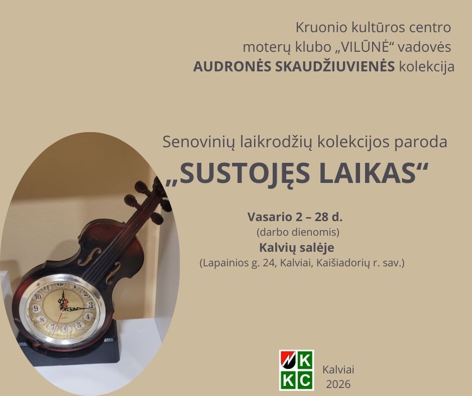 Kruonio kultūros centro moterų klubo „Vilūnė“ vadovės Audronės Skaudžiuvienės senovinių laikrodžių kolekcijos paroda, kurioje eksponuojami rankiniai, staliniai ir sieniniai laikrodžiai, atspindintys skirtingus laikmečius, stilius ir kasdienio gyvenimo ritmus.