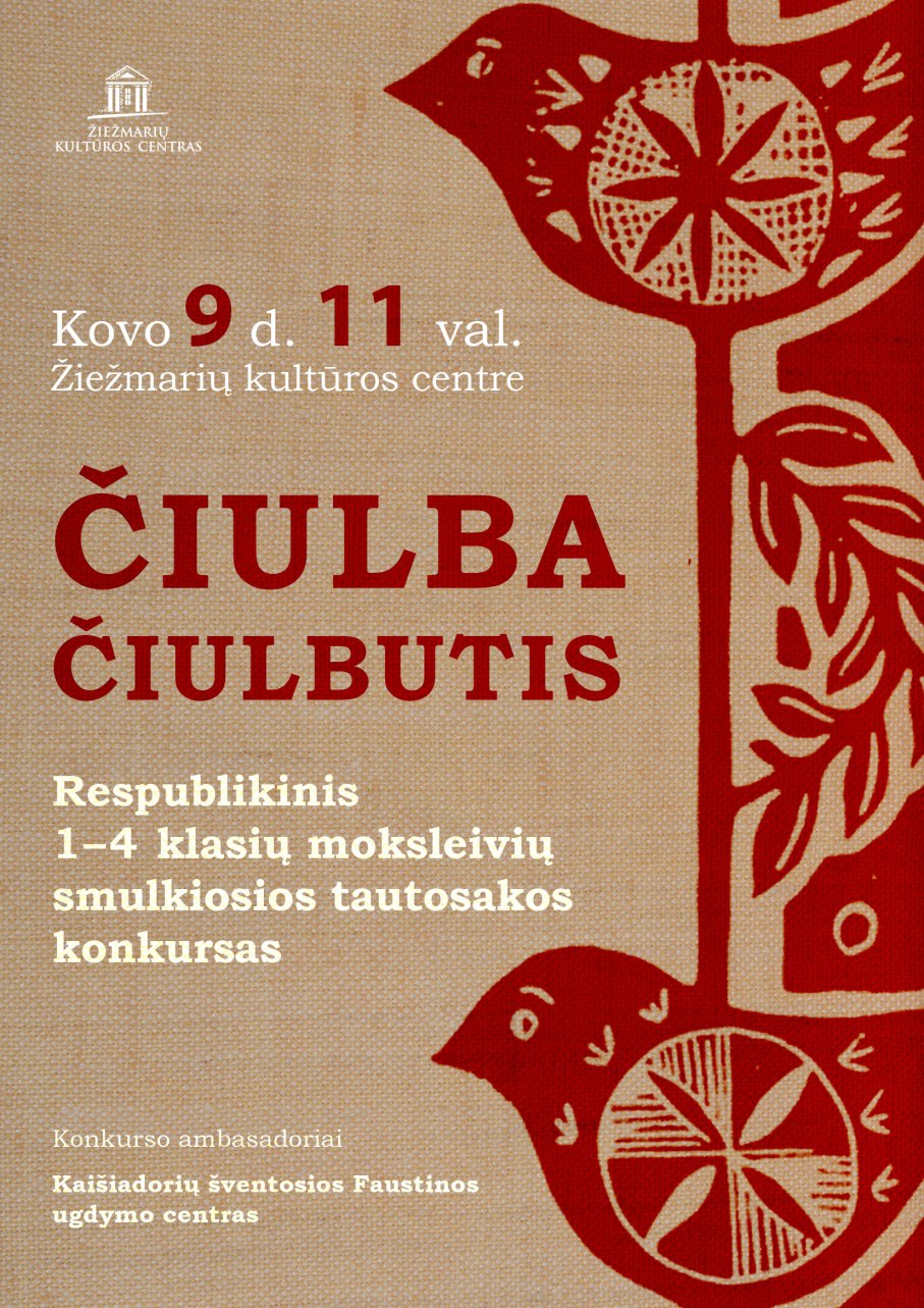 Žiežmarių kultūros centras, norėdamas paskatinti mokinius domėtis smulkiąja tautosaka, paukščiais, padėti suvokti šalies paveldo savitumą ir kultūrinio palikimo svarbą, siekiant išsaugoti senuosius Lietuvos papročius, organizuoja respublikinį smulkiosios tautosakos konkursą „Čiulba čiulbutis”. Konkurse dalyvauja 1–4 klasių moksleiviai.
