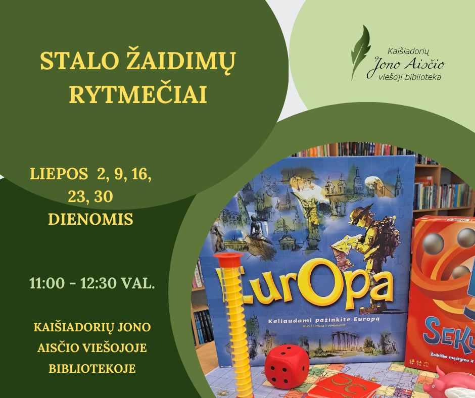 Kiekvieną liepos mėnesio trečiadienį vaikai rinksis žaisti stalo žaidimų.