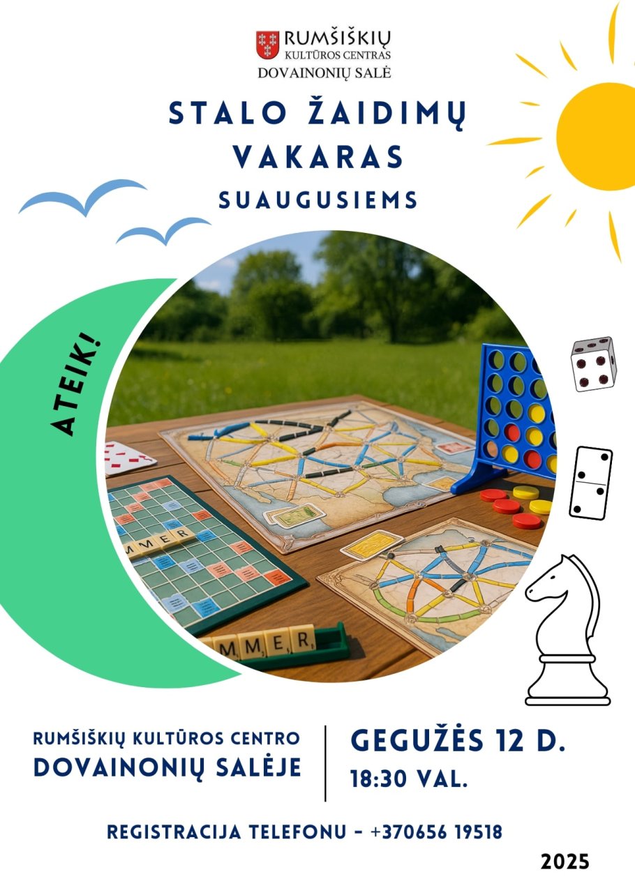 Kviečiame į jaukų stalo žaidimų vakarą suaugusiems. Pasinaudokite puikia proga atsipalaiduoti, pasinerti į draugišką azartą.