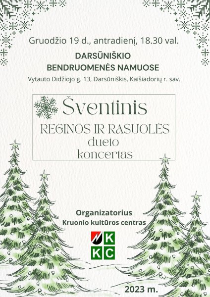 Kalėdiniam laikotarpiui skirtas Reginos Griesiuvienės ir Rasuolės Andriukaitienės dueto koncertas.