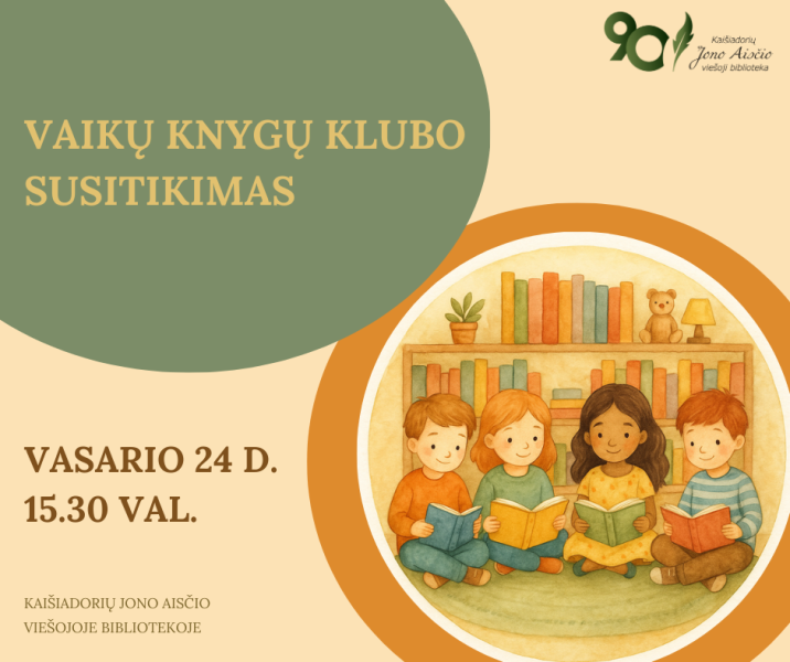 Vasario 24 d., 15.30 val. kviečiame vaikus į susitikimą Kaišiadorių Jono Aisčio viešojoje bibliotekoje, kurio metu jie dalinsis savo įspūdžiais apie perskaitytas knygas, aptars patikusius veikėjus, siužeto posūkius ir įsimintinas citatas. Diskusijos metu bus skatinama argumentuotai reikšti savo nuomonę, klausytis kitų dalyvių minčių ir ieškoti bendrų sąsajų tarp skirtingų istorijų. Veikla padės lavinti skaitymo supratimą, kritinį mąstymą ir žodyną, skatins domėtis naujais kūriniais bei ugdys bendravimo įgūdžius.