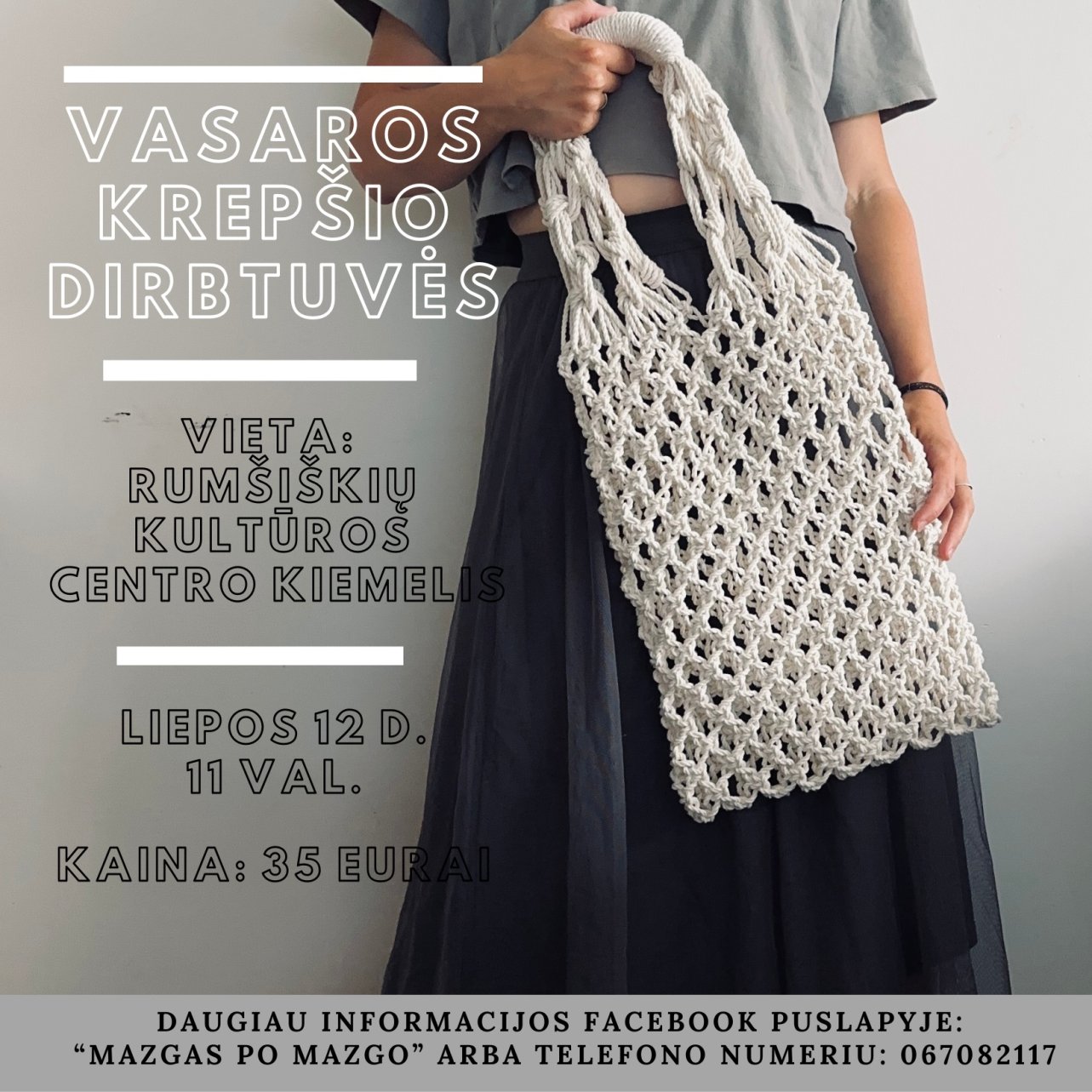 Būtina išankstinė registracija tel. 067082117 arba galit raštelti žinutę į “Mazgas po mazgo”.