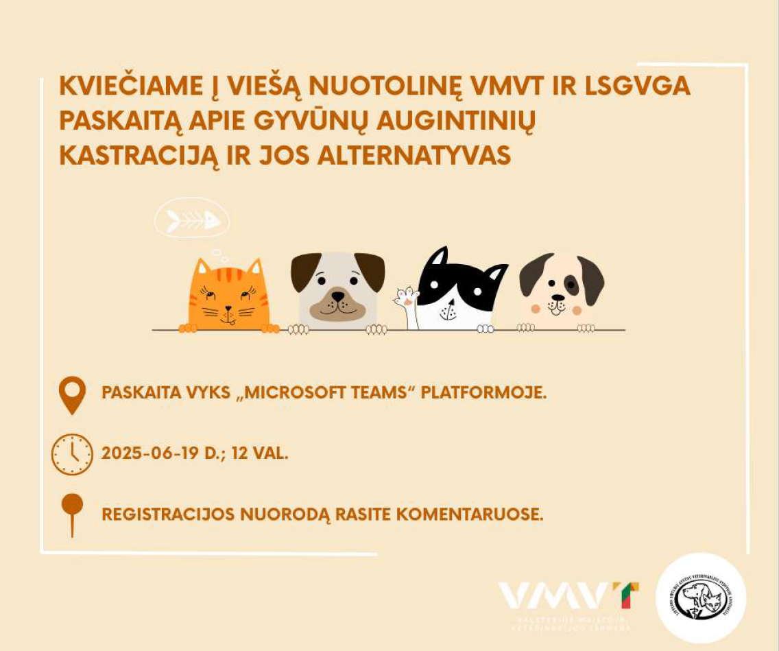 Kviečiame dalyvauti viešoje nuotolinėje paskaitoje apie gyvūnų augintinių kastracijos svarbą bei šiuolaikines alternatyvas