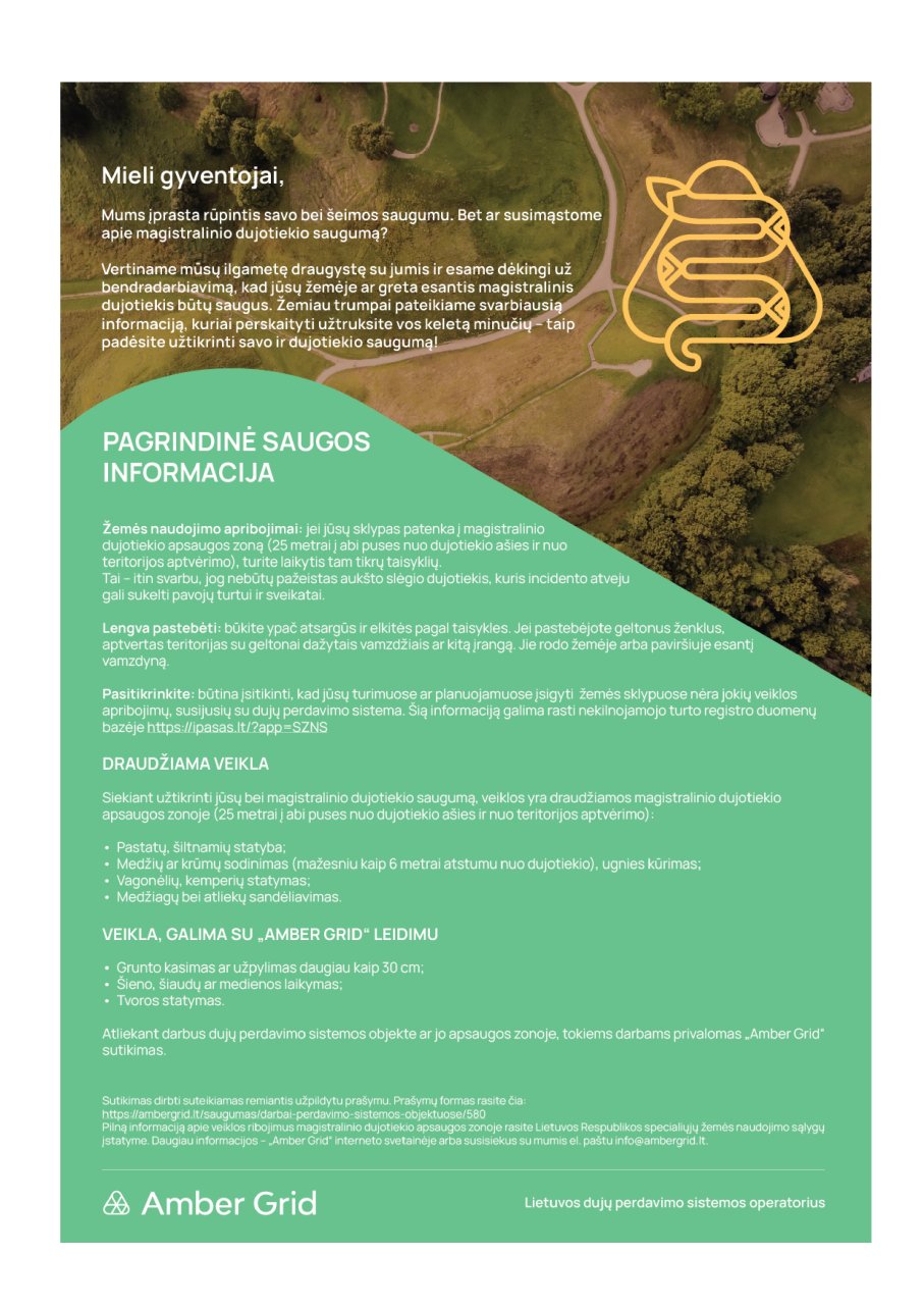 Pagrindinė magistralinio dujotiekio saugos informacija